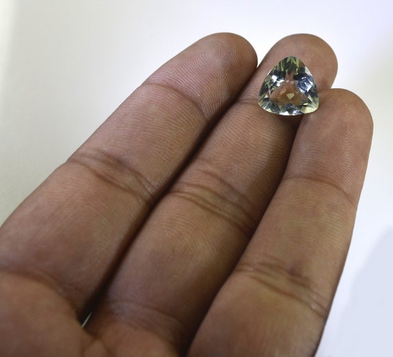 Green amethyst loose gemstones 1 Pieces 11 x 11 mm Trillion Green faceted Gemstone STGAM-2815 by RiyoGems