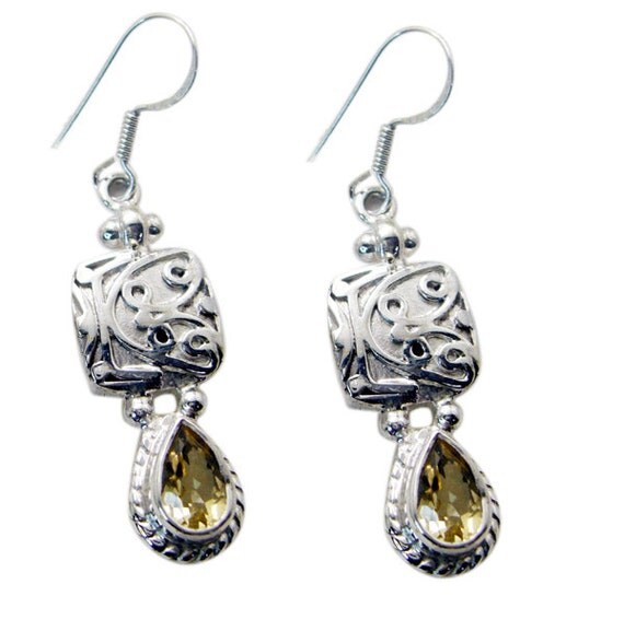 Citrine Silver Jewellery For Women Anniversery Earring L 1.5in by RiyoGems